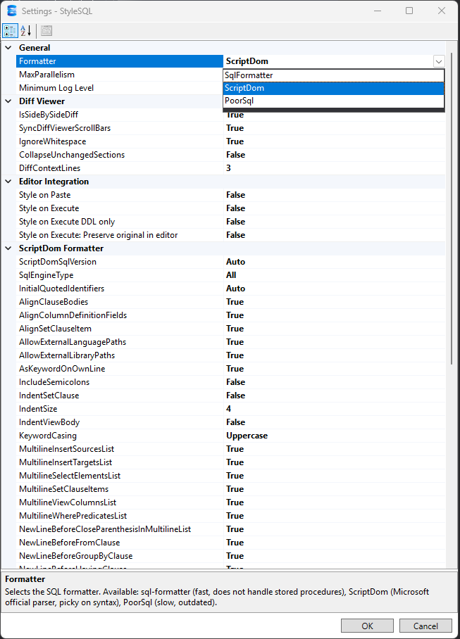 Choose from ScriptDom, Poor Man's SQL Formatter, or sql-formatter engines and tweak all the formatting options to match your style.
